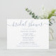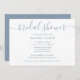 Minimalist dusty blue bridal shower invitation with a modern script font. Matching items available.