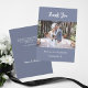 Celebrate your special day and express your heartfelt gratitude with our Custom Photo Wedding Cards, elegantly designed with a sophisticated and trendy dusty blue background. Perfect for sharing your favourite wedding memories, these cards are both stylish and personal, offering a unique way to thank your guests. Personalise and add your photo and thank you note. White text.