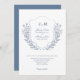 Elegant monogram with floral crest design Wedding Invitation. Features a floral and leafy line art design in a beautiful dusty blue colour. Ready for you to customise with the details of your special day. Please browse the Monogram and Floral Crest Wedding Suite for matching products.