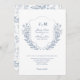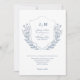 Elegant monogram with floral crest design Wedding Invitation. Features a floral and leafy line art design in a beautiful dusty blue colour. Ready for you to customise with the details of your special day. Please browse the Monogram and Floral Crest Wedding Suite for matching products.
