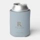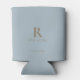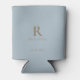 Dusty Blue Monogram Gold Text Wedding Can Cooler