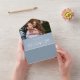 An elegant dusty blue minimalist all-in-one wedding invitation featuring your photo, special date and wedding details set in classic, chic typography. The invitation includes a perforated RSVP card with your wedding website QR code and details. Designed by Thisisnotme©