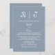 Dusty Blue Monogram Script Minimal Elegant Wedding Invitation