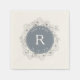 Elevate your wedding reception with our vintage-inspired dusty blue napkins, exuding elegance and boho charm. Adorned with a monogram and intricate gilded silver floral lace, these napkins add a touch of timeless sophistication to your tablescape. Each napkin is a graceful blend of botanical motifs and vintage allure, creating a romantic ambiance for your special day. Embrace the beauty of personalisation and intricate details with these exquisite napkins, adding a memorable touch to your wedding celebration.