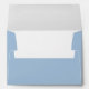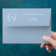 A dusty blue colored background. Decorated with a white colored wreath. Personalize and add your names, address and monogram, initials. White text.