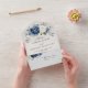 Dusty Blue Navy Champagne Ivory Floral Wedding All In One Invitation