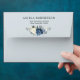 Dusty blue floral wedding return address envelope featuring elegant bouquet of navy blue, royal blue , white , gold, champagne ivory, blush colour rose , ranunculus flower buds and sage green eucalyptus leaves and elegant watercolor bouquet. Please contact me for any help in customisation or if you need any other product with this design.