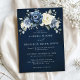 Dusty Blue Navy Champagne Ivory Floral Wedding Inv Invitation