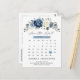 Dusty blue floral calendar save the date postcard featuring elegant bouquet of navy blue, royal blue , white , gold, champagne ivory, blush colour rose , ranunculus flower buds and sage green eucalyptus leaves and elegant watercolor bouquet. Please contact me for any help in customisation or if you need any other product with this design.