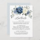 Dusty blue floral wedding details card featuring elegant bouquet of navy blue, royal blue , white , gold, champagne ivory, blush colour rose , ranunculus flower buds and sage green eucalyptus leaves and elegant watercolor boquet. Please contact me for any help in customisation or if you need any other product with this design.