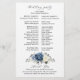 Dusty blue floral wedding program card featuring elegant bouquet of navy blue, royal blue , white , gold, champagne ivory, blush colour rose , ranunculus flower buds and sage green eucalyptus leaves and elegant watercolor bouquet. Please contact me for any help in customisation or if you need any other product with this design.