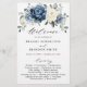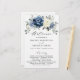 Dusty blue floral wedding program card featuring elegant bouquet of navy blue, royal blue , white , gold, champagne ivory, blush colour rose , ranunculus flower buds and sage green eucalyptus leaves and elegant watercolor bouquet. Please contact me for any help in customisation or if you need any other product with this design.