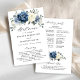 Dusty blue floral wedding program card featuring elegant bouquet of navy blue, royal blue , white , gold, champagne ivory, blush colour rose , ranunculus flower buds and sage green eucalyptus leaves and elegant watercolor bouquet. Please contact me for any help in customisation or if you need any other product with this design.