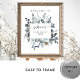 Elegant welcome sign with ability to add any event, and exquisite floral bouquet encasing your information. 8" x 10" is simply an example, you may choose from bigger and smaller sizes. Foliage and flowers in dusty blue, navy, white, grey, sage and caramel tones. Your name in graceful modern calligraphy. Easy to frame or alternatively glue/staple to sturdy inexpensive MDF. Part of our "Rustic Blue Mountains" wedding and events collection.
