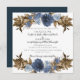 Dusty Blue Navy Floral Fall Brown Foliage Wedding Invitation
