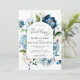 Dusty Blue Navy Peony All In 1 QR Code Wedding Invitation