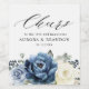 Dusty blue floral wedding favour wine label featuring elegant bouquet of navy blue, royal blue , white , gold, sparkling wine ivory, blush colour rose , ranunculus flower buds and sage green eucalyptus leaves and elegant watercolor bouquet. Please contact me for any help in customisation or if you need any other product with this design.