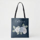 Dusty Blue wildflowers Boho Script Personalised Name Tote Bag.