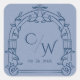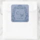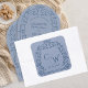 Dusty Blue Ornate Arch Botanical Wedding Envelope Square Sticker Monogram Seal .