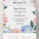 Dusty Blue Pastel Pink hydrangeas Wedding All In O One Invitation