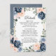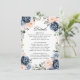 Dusty blue floral geometric wedding details card featuring elegant bouquets of navy / Dusty blue, white , blush , peach rose and sage green eucalyptus leaves and elegant glitter geometric neutral frame. Please contact me for any help in customisation or if you need any other product with this design.