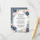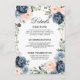 Dusty blue floral geometric wedding details card featuring elegant bouquets of navy / Dusty blue, white , blush , peach rose and sage green eucalyptus leaves and elegant glitter geometric neutral frame. Please contact me for any help in customisation or if you need any other product with this design.