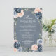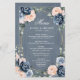 Dusty blue floral geometric wedding menu featuring elegant bouquets of navy / Dusty blue, white , blush , peach rose and sage green eucalyptus leaves and elegant glitter geometric neutral frame. Please contact me for any help in customisation or if you need any other product with this design.