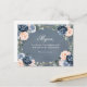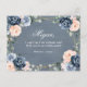 Dusty blue floral geometric will you be my bridesmaid postcard featuring elegant bouquets of navy / Dusty blue, white , blush , peach rose and sage green eucalyptus leaves and elegant glitter geometric neutral frame. Please contact me for any help in customisation or if you need any other product with this design.