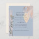 Modern BOHO wedding theme is featured here with colours dusty blue and peach. Graphics of dream catcher and herbs create a lovely aesthetic, warm and inviting for your woodland, outdoors, garden, barn boho-themed wedding.