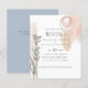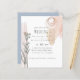 Modern BOHO wedding theme is featured here with colors dusty blue and peach. Graphics of dream catcher and herbs create a lovely esthetic, warm and inviting for your woodland, outdoors, garden, barn boho-themed wedding.
