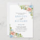 Dusty Blue Peach Floral Greenery Wedding Invitation