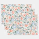 Dusty Blue & Peach Pink Peony Garden Wrapping Pape Paper Sheet