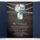 Dusty Blue Peony Mason Jar QR Code Wood Wedding Tri-Fold Invitation