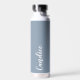 Gift your wedding bridesmaid or maid of honour with this trendy, vacuum Insulated water bottle that features her name in white, stylised script on a dusty blue colour background designed to match your wedding colour scheme. Personalise bottle by editing and replacing name with your own as desired. Select your water bottle style. Available in many, popular bridesmaid wedding colour schemes.