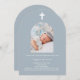 Dusty blue photo arch boy Baptism Invitation
