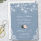 Elegant Watercolor Dusty Blue Pink Blush Floral, String Lights and Lace Wedding Invitation Card