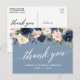 Modern Elegant Calligraphy Script, Watercolor Dusty Blue Pink Floral Wedding Thank You Postcard