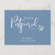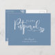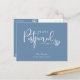Have to postpone your Wedding? no problem, let family and friends know the change of plans with this elegant Postponement Postcard. Dusty blue design with the phrase "Plans Postponed" in white modern hand written typography and white decorative flower detail. Back with half side in dusty blue with two dainty flowers and your message in white. Other side conveniently in white so you can add easily all post destination. Please feel free to change message to suit your needs. Ability to have message from couple to friends and family or from parents to their guests. Handwritten typography details in the back as well. Modern, simple and elegant romantic feel. Convenient postcard, less waste, less hassle. Also available in card presentation.