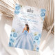 Elegant Baby Blue Flowers Wedding Dress Silver Crown Mis Quince Invitation