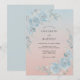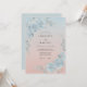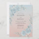 This artwork features a soft ombre background transitioning from a cool sky blue to a warm peachy pink. Elegant watercolor roses in shades of dusty blue adorn the corners, accompanied by delicate green foliage. The aesthetic is ethereal and romantic, perfect for a whimsical seasonal event. A palette of pastel tones creates a serene and polished atmosphere.