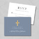 Dusty Blue Religious Cross Boy First Communion RSVP Card