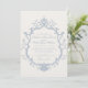 This is a dusty blue wedding inviation featuring a rococo style floral frame and classic serif fonts. Most wording can be edited to fit your plans, including names, date, and location. The design has a calm, romantic feel and works well with a variety of wedding styles.