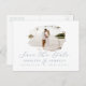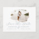 Dusty Blue & White Romantic Brushed Frame with Photo Chic Save the Date Postcard. With luxury marble texture back, elegant calligraphy Script font plus slim line serif! Edit yours today with your names, date and photo!