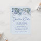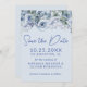 Dusty blue romantic floral on light blue floral Save the Date card. Customise names, dates, and information.