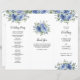 These wedding programs feature a modern watercolor botanical design with dusty blue roses, flowers and eucalyptus foliage. You will need to fold them along the lines. Personalise with your text. Matching products available.