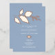 Modern yet elegant botanical personalised engagement party invitations frames your event details with a border of real gold foil leaves over a solid dusty blue background. Use the template fields to add your custom text. Perfect for fall occasions. To see more printed autumn foliage invites like this visit Do Tell A Belle on Zazzle at www.zazzle.com/dotellabelle