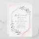 Modern greenery rehearsal dinner invitation featured rustic dusty blue watercolor botanical foliage greenery design with real rose gold foil leaves and geometric frame, simple and elegant.