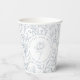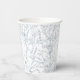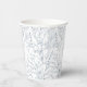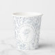 Elegant romantic dusty blue floral pattern in delicate roses wedding paper cups with bride and grooms monogram.