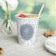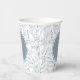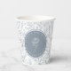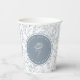 Elegant romantic dusty blue floral pattern rose wedding paper cups with bride and grooms monogram.