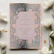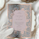 Set the tone for an enchanting wedding day with our Serene Blue and Rose Quartz Rococo Elegance Wedding Invitation Suite. This set features a graceful front with a serene blue background and blush accents, highlighted by metallic gold foil for a touch of luxury. The back complements it with a blush canvas framed by the same serene blue and gold flourishes, showcasing the wedding details in an elegant typeface. The design is a modern tribute to the ornate and theatrical Rococo style, known for its elaborate ornamentation and light colours, perfect for a couple who desires a wedding invitation that balances classic artistry with contemporary sophistication. Each detail of the invitation has been thoughtfully crafted to create a harmonious and inviting announcement for your special day.